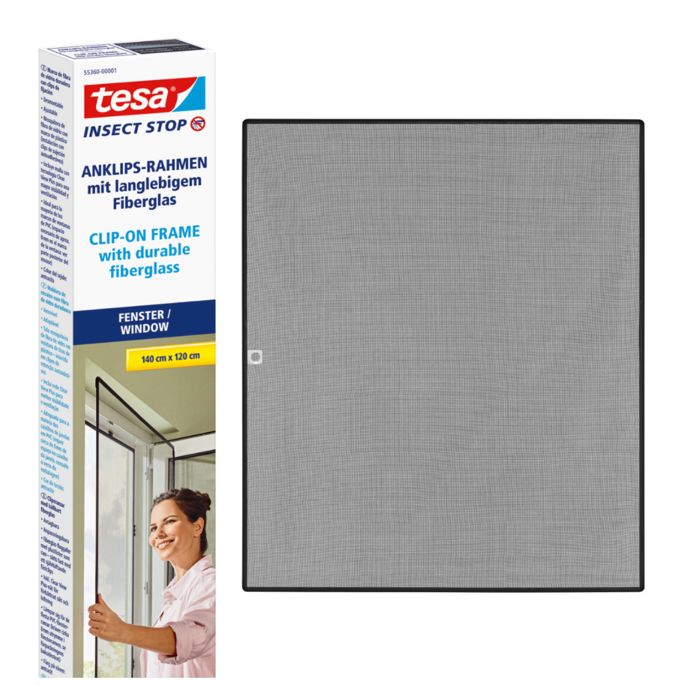 TESA INSECT STOP to wysokiej jakości moskitiera okienna z ramą, o wymiarach 1,2m x 1,4m, w kolorze czarnym.