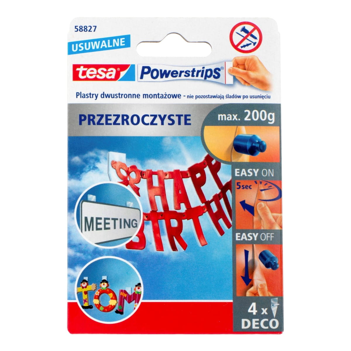 Plastry montażowe samoprzylepne tesa® POWERSTRIPS do dekoracji, 4 szt., przezroczyste (kod prod.: 58827-00000-00)